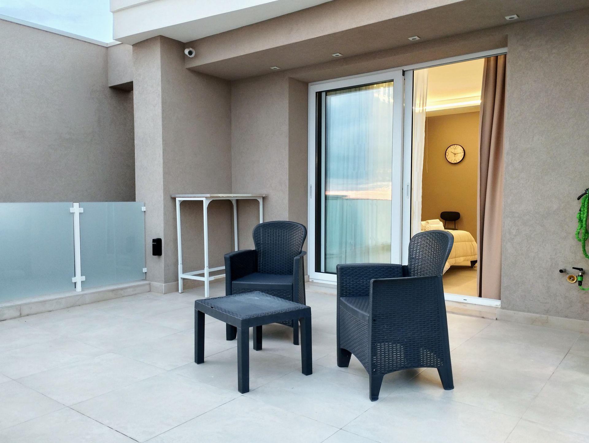Scopri il comfort e l’eleganza della nostra suite tripla, un ambiente ampio, luminoso e moderno, di recente costruzione, pensato per offrirti un soggiorno indimenticabile. La suite vanta un grande terrazzino privato con vista mozzafiato sulla campagna e sul mare, ideale per momenti di relax, e un piccolo balconcino sul retro per godere di ogni angolo di panorama.
